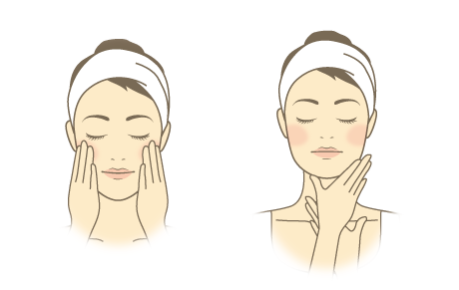 - 2.首までしっかりとのばします。最後に、顔全体を手のひらでおさえてなじませます。特に気になる箇所にはたっぷりと使用してください。